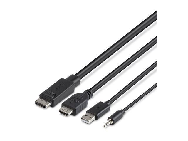Belkin Secure KVM Combo Cable - Video- / USB / audio-kabel - TAA-samsvar - USB, minijakk, HDMI, DisplayPort (hann) til USB-type B, minijakk, HDMI, DisplayPort (hann) - 3.05 m - passiv, 4K-støtte - svart