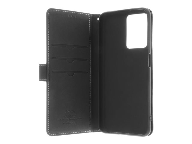Insmat - Lommebok for mobiltelefon - ekte skinn, termoplast-polyuretan (TPU), kartong+papir+aluminiumsfolie, bomullssting - svart - for OPPO A76 650-3132