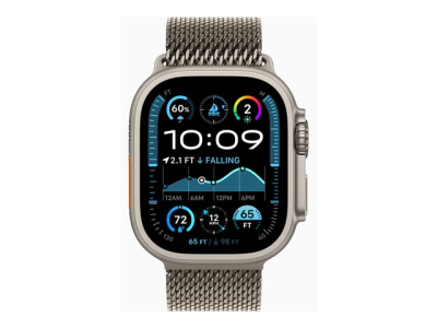 Apple Watch Ultra 2 - 49 mm - naturlig titan - smartklokke med fint strikket løkke - båndbredde: S - 64 GB - LTE, Wi-Fi 4, UWB, Bluetooth - 4G - 61.4 g MX4M3DH/A