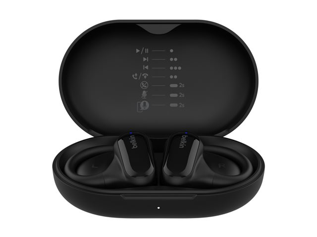 The Belkin SoundForm ClearFit earphones deliver a listening experience with Environmental Noise Cancellation technology, ensuring clarity in audio even in noisy environments. Engineered for versatility, the earphones feature a robust wireless connection via Bluetooth 5.3, allowing pairing with various devices, including iPhone, Android phones, and computers. They provide a comfortable over-the-ear mount with open ear design, making them ideal for long periods of wear while offering an impressive max sound pressure of 100 dB for audio enjoyment. The built-in microphone enables clear calls and voice assistance, making them suited for on-the-go lifestyles.