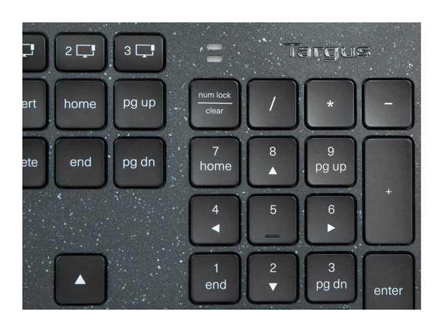 Targus EcoSmart - Tastatur - bærekraftig energiutvinning - bakteriedrepende middel - bakgrunnsbelyst - trådløs - Bluetooth 5.0 - AZERTY - Fransk - tastsvitsj: Scissor-Key - svart - recycled packaging