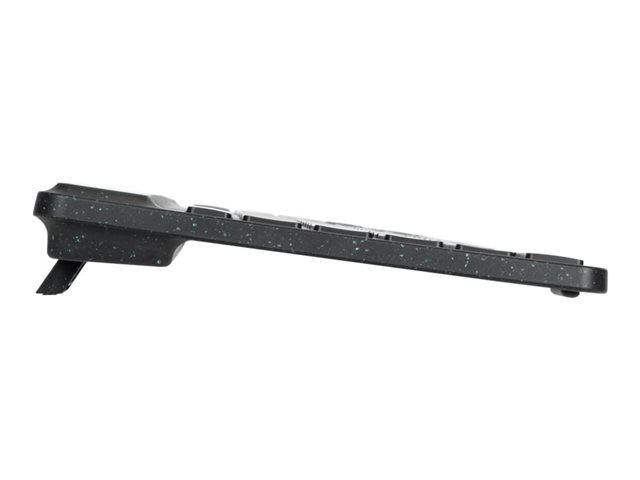 The Targus Sustainable Energy Harvesting EcoSmart French-language keyboard combines Bluetooth and advanced solar technologies with post-consumer recycled materials in an ecofriendly, full-size keyboard. Manufactured from up to 85% recycled material and infused with antimicrobial protection, this keyboard helps to prevent the growth of micro-organisms, while helping to protect the environment - even its packaging is recycled. It's primarily powered by solar cells optimized to harvest light from a variety of light conditions (including indoor artificial lighting) and connects to up to 3 devices using Bluetooth SoC, which means its extremely low-power capabilities makes it 3 to 4 times more power-efficient than other Bluetooth keyboards. And, this keyboard features Targus DefenseGuard antimicrobial protection. Unlike topically applied sprays, this DefenseGuard keyboard is infused with antimicrobial additives that don't wear or wash off, and works continuously for the life of the product.