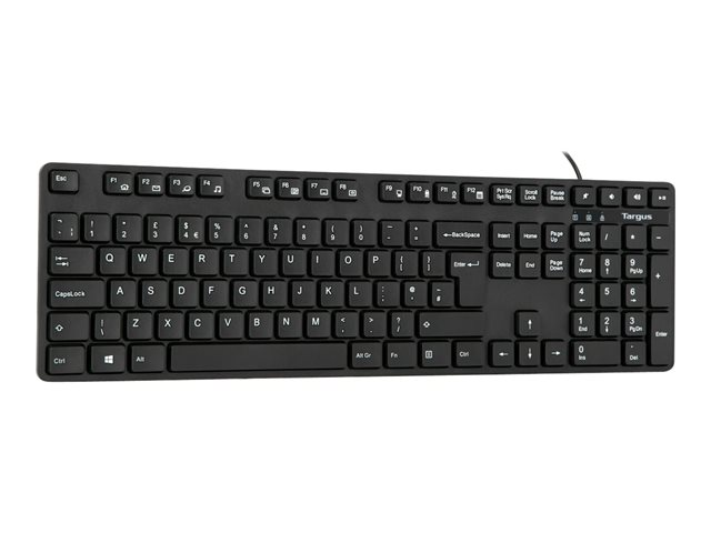 Discover the Targus keyboard, a reliable and user-friendly input device designed to enhance your computing experience. With its wired connectivity and USB interface, this keyboard offers a stable and fast connection to your PC. The 1.5 m cable length ensures that you can position the keyboard comfortably, regardless of your desk setup. It features a full 108-key QWERTY layout, including a numeric keypad, making it suitable for a wide range of typing tasks. Beyond functionality, the keyboard is built with DefenseGuard Antimicrobial Protection, providing a cleaner surface and contributing to your overall well-being. Its compliance with Plug-and-Play standards means setting up your new keyboard is a breeze, allowing you to get started right away without the need for additional software installations.