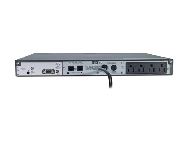 APC Smart-UPS SC 450VA - UPS (kan monteres i rack) - AC 120 V - 280 watt - 450 VA - RS-232 - utgangskontakter: 4 - 1U - grå - ikke solgt i CO, VT og WA - for P/N: AR3106SP, AR4018SPX432, AR4024SP, AR4024SPX429, AR4024SPX431, AR4024SPX432, NBWL0356A SC450RM1U
