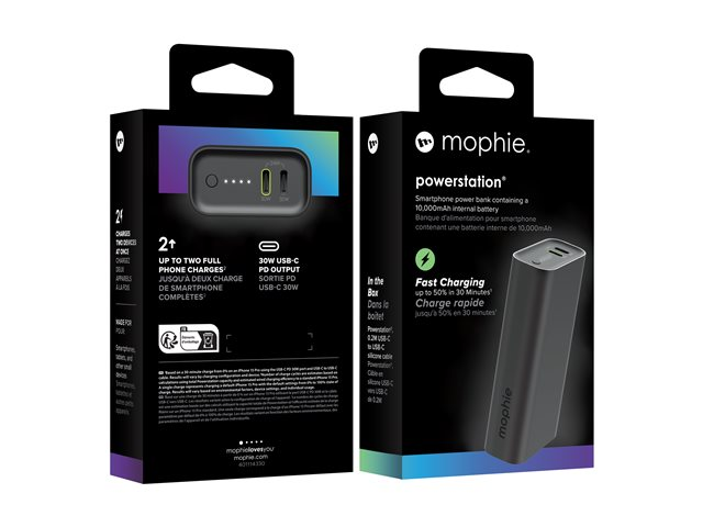 mophie powerstation - Strømbank - 10000 mAh - 30 watt - PD - 2 utgangskontakter (24 pin USB-C) - svart 401114330