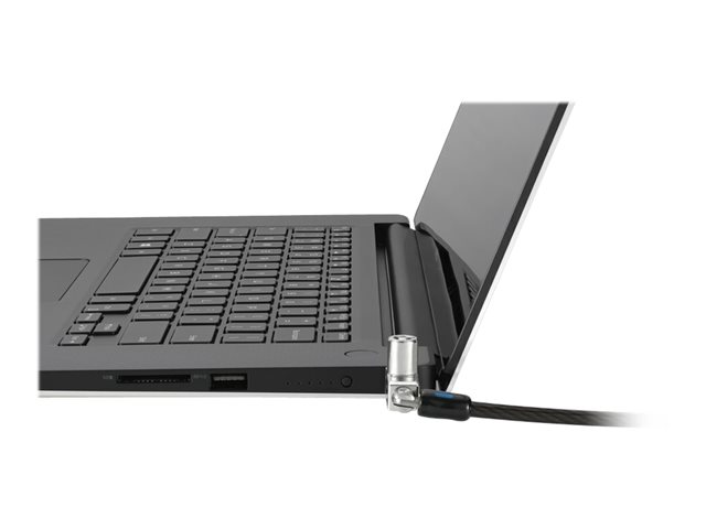The Slim N17 2.0 keyed laptop lock for wedge-shaped slots is perfect for ultra-thin and 2-in-1 laptops since it won't block valuable ports and allows the laptop to lie flat and stable. Features a carbon steel cable with omnidirectional pivoting head and rotating anchor.